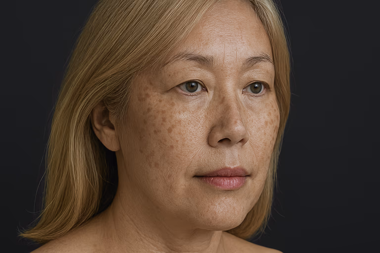 Age spots are flat, brown, or tan areas that form when your skin produces excess melanin in response to UV exposure. Over time, repeated sun damage accelerates pigment buildup, especially in areas that receive the most sunlight. While harmless, these spots can make your skin look older and uneven in tone. Age spots can vary in size and depth, and may appear alongside other signs of photoaging like wrinkles, rough texture, and broken capillaries.